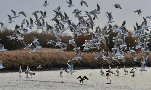 可觀賞鳥類:鶴、江鷗、野鴨、大雁