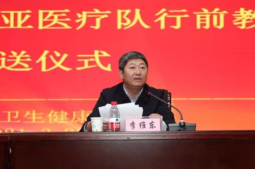 黑龍江省衛(wèi)生健康委黨組成員、副主任李維東作動(dòng)員講話并為醫(yī)療隊(duì)授旗。他要求全體隊(duì)員深入貫徹新時(shí)代黨的建設(shè)總體工作要求,把“不忘初心、牢記使命”作為持續(xù)加強(qiáng)黨的建設(shè)的永恒課題和黨員干部的終身課題。務(wù)必高度重視疫情防控,做到人物并防、多病同防,疫情防控必須慎終如始,要傳遞好中國抗疫經(jīng)驗(yàn),落實(shí)好對(duì)口醫(yī)院合作機(jī)制,推進(jìn)援助項(xiàng)目創(chuàng)新。并以身邊的抗疫英雄為榜樣,秉承援外醫(yī)療優(yōu)良傳統(tǒng)、弘揚(yáng)偉大抗疫精神。