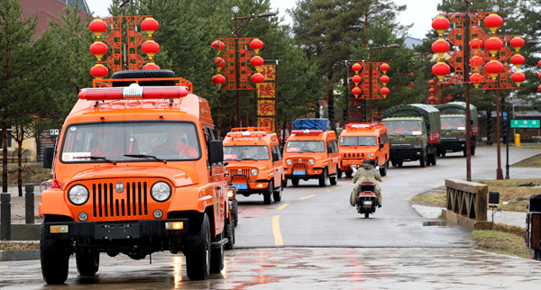 在漠河市城區(qū)主要街道,由防火指揮車(chē)、防火宣傳車(chē)、防火運(yùn)兵車(chē)等33臺(tái)車(chē)輛組成的反思巡游車(chē)隊(duì),長(zhǎng)鳴防火警報(bào),繞市區(qū)緩慢行駛,通過(guò)聲勢(shì)浩大的宣傳,警醒廣大居民群眾以史為鑒,深刻反思“五?六”火災(zāi)帶來(lái)的慘痛教訓(xùn),讓森林防火時(shí)刻深入人心,嚴(yán)防森林火災(zāi)發(fā)生。在漠河市區(qū)開(kāi)展巡游活動(dòng)的同時(shí),各鎮(zhèn)也同步組織開(kāi)展了規(guī)模不同的“五·六”反思警示教育活動(dòng)。