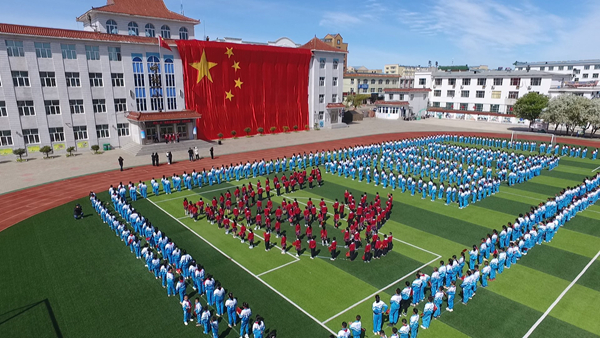 童心永向黨、歡歌慶六一,呼瑪縣第一小學的操場上,由全校600余名師生共同組成黨徽、100的造型圖案,在四層樓高的巨幅國旗映襯下,蔚為壯觀,一面面小紅旗在學生們手中揮舞,師生們懷著崇敬的心情,共同演唱《沒有共產(chǎn)黨就沒有新中國》。氣勢磅礴的開場節(jié)目,表達了呼瑪縣廣大師生學黨史、頌黨恩、跟黨走,隆重慶祝建黨100周年的激動心情。