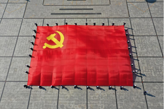 隨后,伴隨著雄壯的樂曲聲,黨旗接力傳遞開始,一面巨幅黨旗在黨員干部、職工群眾的手中徐徐傳遞......參加活動的黨員干部、職工群眾分別與黨旗合影,表達對偉大的黨和祖國母親的真摯祝愿。