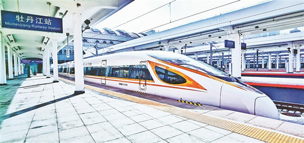 復(fù)興號(hào)高寒動(dòng)車組首次??吭谀档そ?。黑龍江日?qǐng)?bào)全媒體記者 邵國(guó)良攝