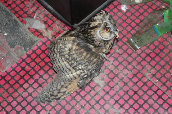 經(jīng)確認,受傷的大鳥學名“長耳鸮”,鴟鸮科耳鸮屬鳥類。其耳羽簇長,位于頭頂兩側(cè),豎直如耳。面盤顯著,棕黃色,皺翎完整,白色而綴有黑褐色。上體棕黃色,而密雜以粗著的黑褐色羽干紋;頦白色,其余下體棕白色而具粗著的黑褐色羽干紋。腹以下羽干紋兩側(cè)具樹枝狀的橫枝。跗蹠和趾密被棕黃色羽,眼橙紅色。以小鼠、鳥、魚、蛙和昆蟲為食。對于控制鼠害有積極作用,應大力保護。屬于中國國家二級保護動物。