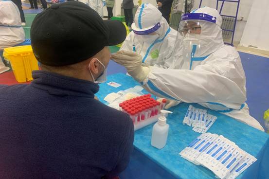在呼瑪縣第二輪全民核酸實(shí)戰(zhàn)演練現(xiàn)場(chǎng),雖然當(dāng)?shù)貧鉁匾呀?jīng)降至零下十度左右,但排隊(duì)的群眾都能夠做到嚴(yán)格遵守間隔一米、戴口罩、不聚集的規(guī)定,配合醫(yī)護(hù)人員高質(zhì)高效開展核酸檢測(cè)采樣。在社區(qū)、公安等各部門工作人員和志愿者的疏導(dǎo)下,檢測(cè)現(xiàn)場(chǎng)秩序井然、有條不紊。