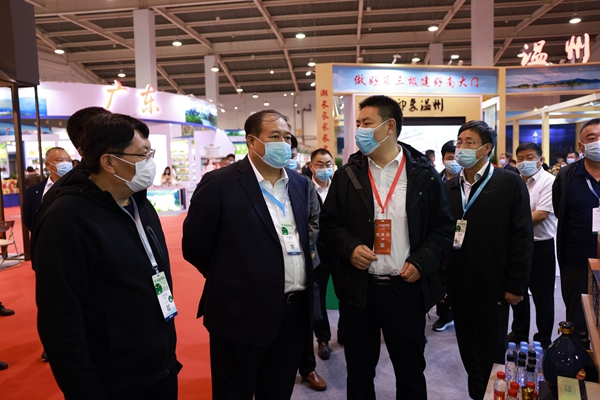 在開(kāi)館當(dāng)天上午,國(guó)家林草局總經(jīng)濟(jì)師楊超,國(guó)家林草局發(fā)改司副司長(zhǎng)蘇祖云,在大興安嶺林業(yè)集團(tuán)公司黨委副書記、總經(jīng)理李軍的陪同下,進(jìn)行巡館。李軍向楊超、蘇祖云重點(diǎn)介紹了北極冰藍(lán)莓酒莊生產(chǎn)的冰酒、雪酒、白蘭地,連續(xù)多年在國(guó)際葡萄酒大賽上榮獲大金獎(jiǎng)、金獎(jiǎng),吸引了眾多人的注意,并當(dāng)場(chǎng)品嘗了冰酒,高度評(píng)價(jià)了該產(chǎn)品的口感與質(zhì)量。