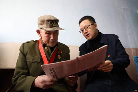 阿木爾林業(yè)局黨委委員、宣傳部部長高樹源(右)走進(jìn)老黨員張俊峰家中,宣傳黨的十九屆六中全會(huì)精神(王力攝)