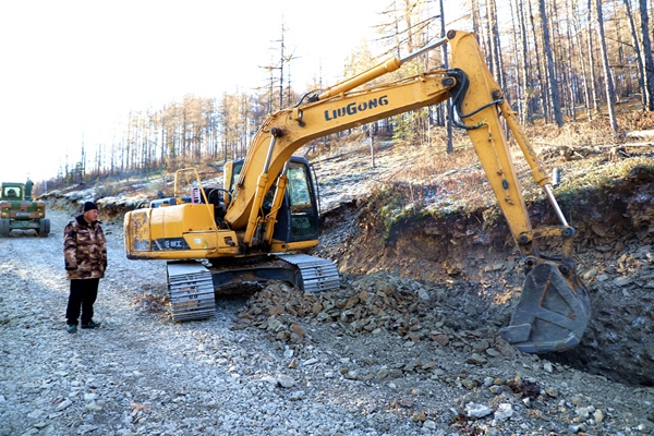 阿木爾林業(yè)局多種經(jīng)營(yíng)公司職工新開通防火應(yīng)急路,打通防火道路最后一公里(王力 攝)