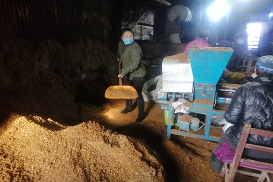 新林林業(yè)局塔源林場(chǎng)黨員志愿者幫助黑木耳養(yǎng)殖戶做菌上料(董淑玲 攝)