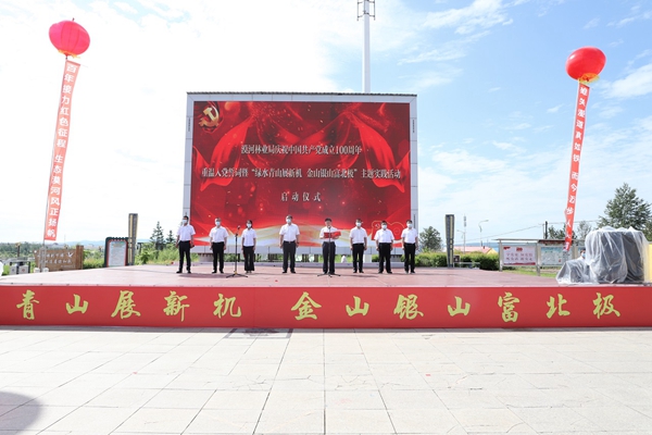 漠河林業(yè)局慶祝中國(guó)共產(chǎn)黨成立100周年重溫入黨誓詞暨“綠水青山展新機(jī) 金山銀山富北極”主題實(shí)踐活動(dòng)啟動(dòng)儀式(李雪原 攝)
