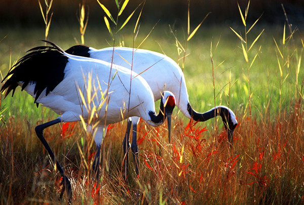 可觀賞鳥(niǎo)類:白頭鶴、丹頂鶴、東方白鸛等