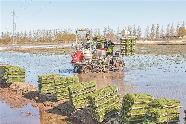 連日來,玖成水稻種植合作社的水稻插秧工作緊張有序地進行。截至24日10時,播種水稻秧苗4萬畝。袁勝海高興地說:“今年能比計劃提前一天時間完成播種任務,得益于合作社大力推廣科學種植技術(shù)?!?/span>