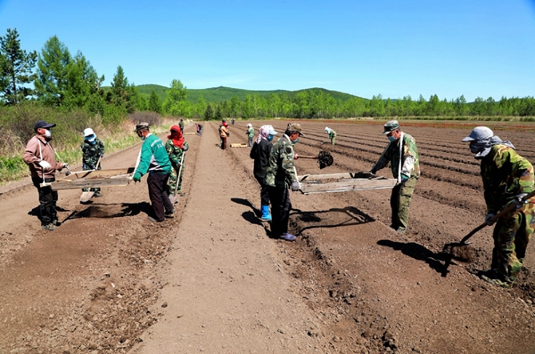阿木爾林業(yè)局中心苗圃搶抓春播有利時(shí)機(jī),直播落葉松(王力 攝)