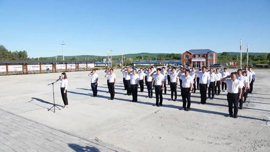 婁喜春帶領40余名地企軍警黨員干部在先鋒廣場重溫入黨誓詞,用鏗鏘有力的誓言,表達著永遠跟黨走、為共產主義事業(yè)奮斗終身的堅定信念。